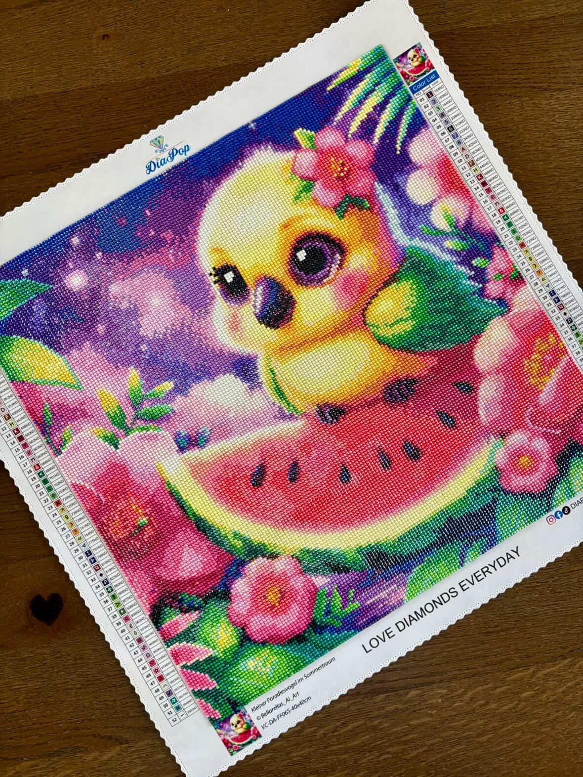 und glitzernde Steinchen in kräftigen, leuchtenden Farben. Das ist mein erster Eindruck nach dem Auspacken des Bildes aus der hochwertigen Umverpackung/Diapop-Karton. Leider kann ich das Bild noch nicht anfangen zu painten, da ich zurzeit noch ein anderes Projekt bearbeite. Aber mein erster Eindruck von Leinwand, Steinchen und dem schönen Karton von Diapop ist ein sehr Guter !