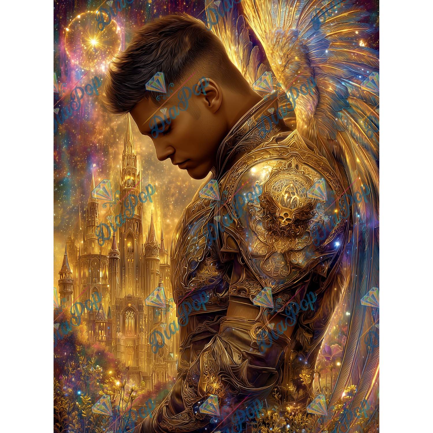 _sweet_loco_ai – Goldener Erzengel vor leuchtender Schlossstadt