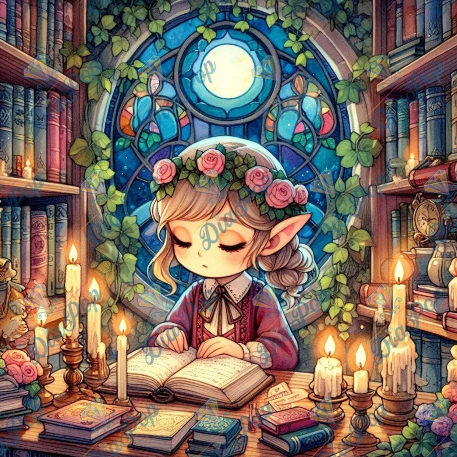 Bellarellas_Ai_Art – Eine Lese-Elfe im Kerzenschein