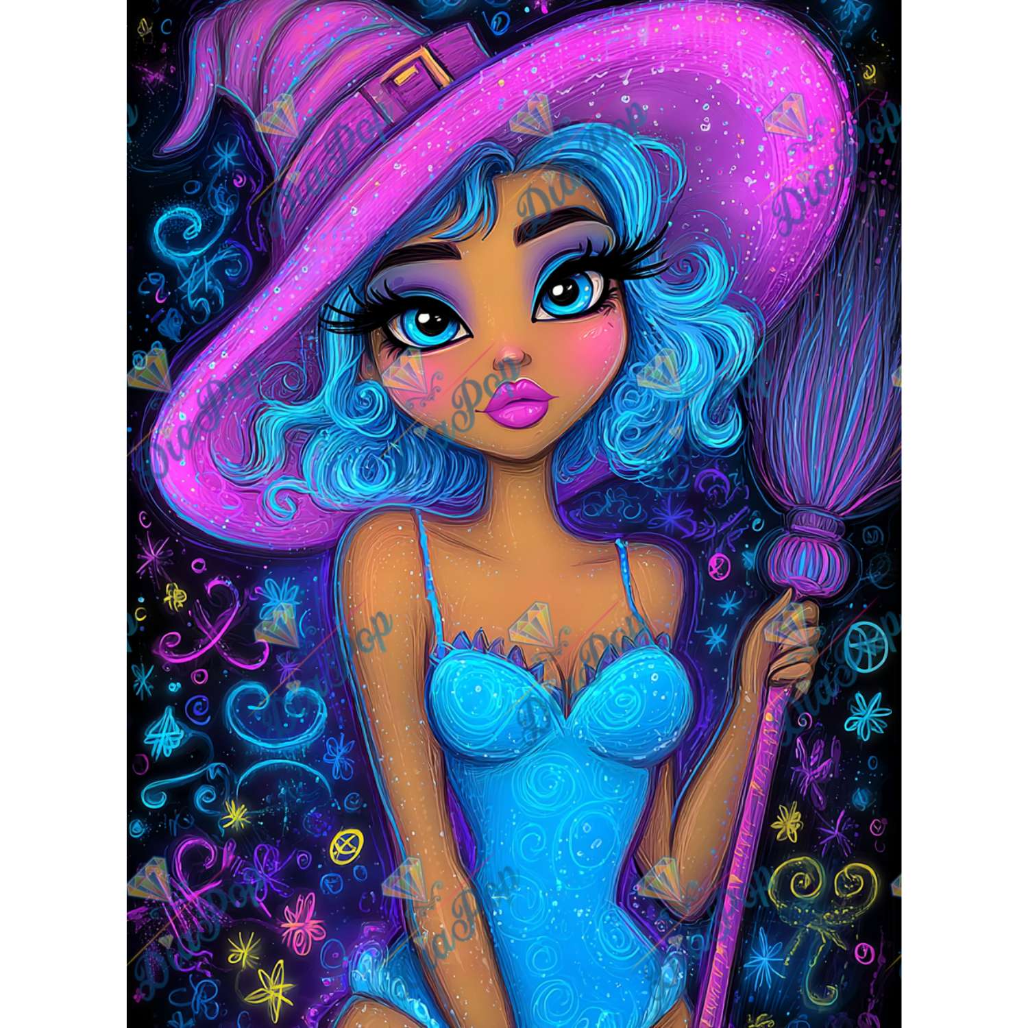 Elly_A.I – Neon Hexenmädchen mit Besen