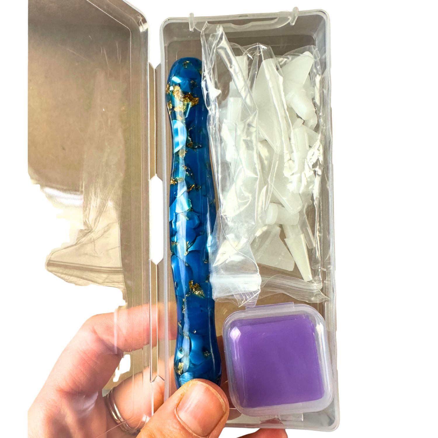 💎 Diamond Painting Stift – Blue Ocean Gold | Handgefertigter Resin Pen mit Aufsätzen & Wachs